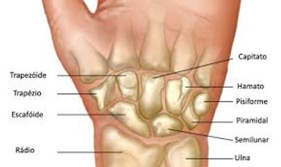 A articulação do punho é formada pela região distal dos ossos do antebraço (rádio e ulna) e os ossos do carpo, conectados por ligamentos.